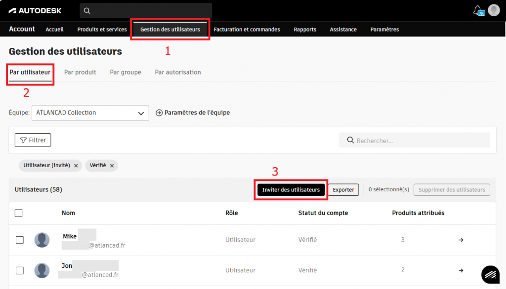 Autodesk Account : Ajout d’utilisateurs