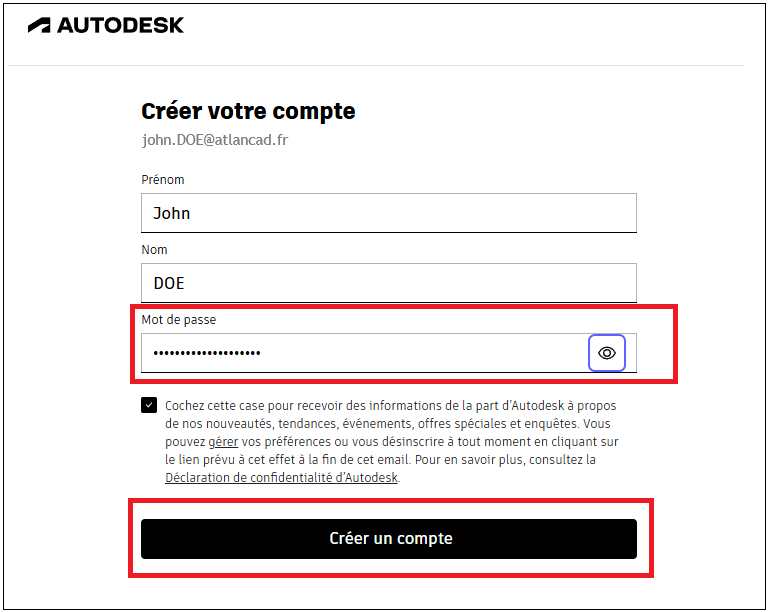 Autodesk vous envoie un email à la création de votre compte. Rechercher dans votre boîte mail, la confirmation de création de compte Autodesk.