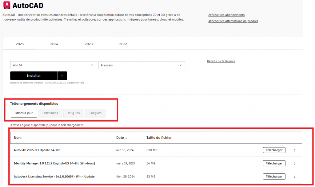 Téléchargement des logiciels Autodesk et leurs mises à jour
