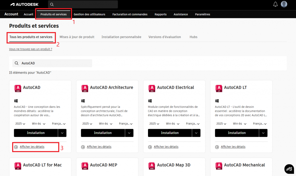 Pour télécharger des produits, connectez-vous à votre compte Autodesk Account