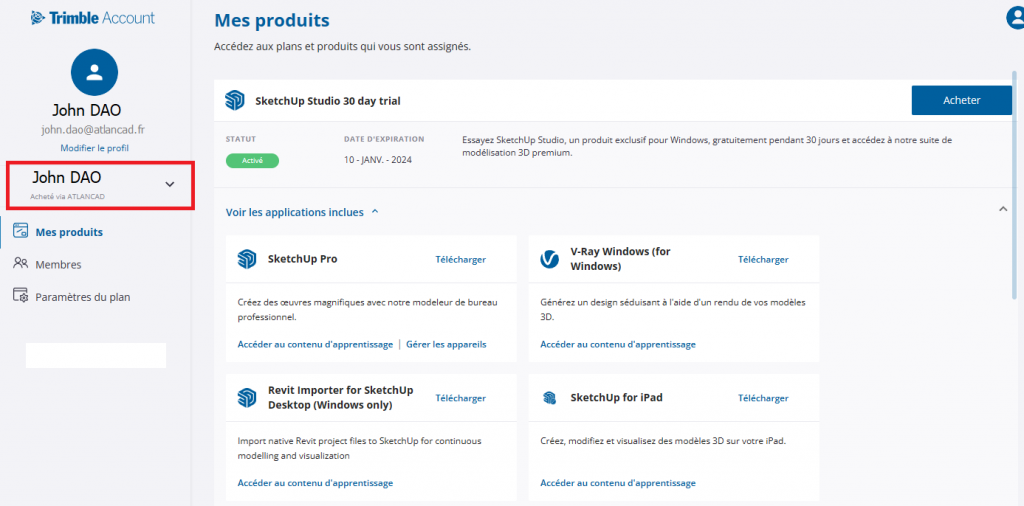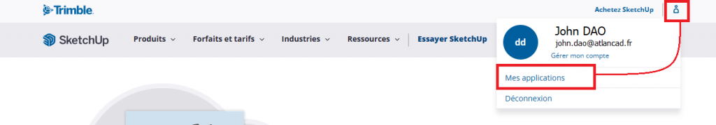 Une fois connecter à votre compte Trimble, rendez-vous sur « Mes applications »